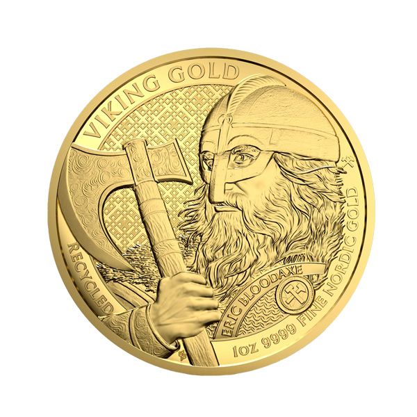 Kultaraha – 1 oz Lyöty puhtaasta 999,9 kullasta. Kuvio on saanut inspiraationsa saagaperinteestä ja kuninkuuden symboleista. Toimitetaan sertifikaatin kanssa. Kehittänyt K.A. Rasmussen.
